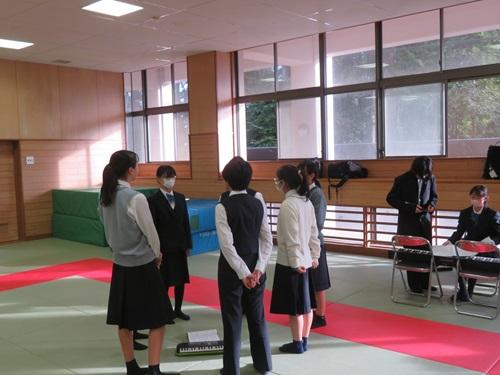 朝の会前の附属中職員室脇の教室から、元気な挨拶が
