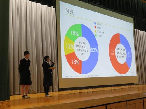選考会で選ばれた3グループの発表。各教室に分かれてのセッション。祝日で、天候も悪い中、