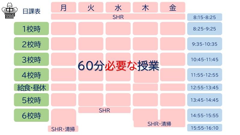 〇 授業の関係で、年度により5時間授業の曜日が変更になる場合があります。